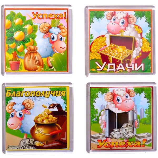Магнит пластиковый "Удачи, успеха, благополучия". Размер: 6x6 см. В упаковке 48 шт.
