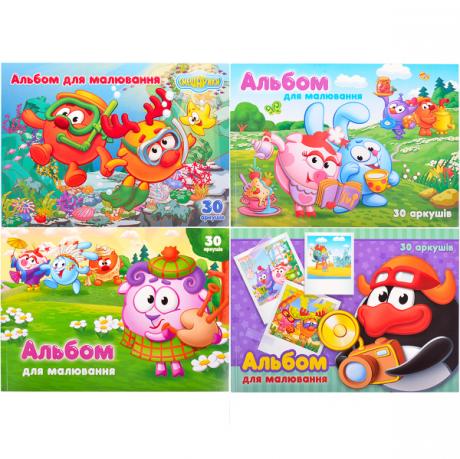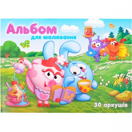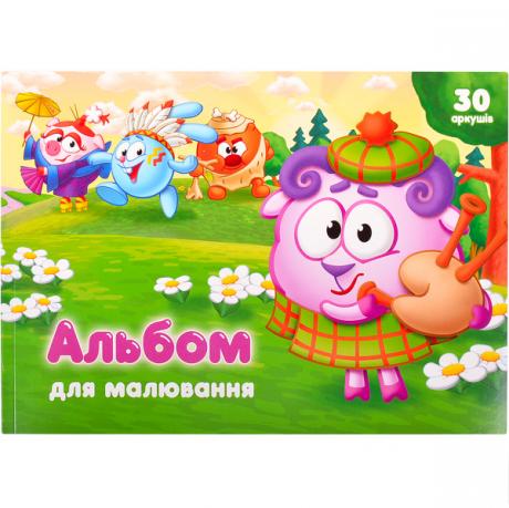 Альбом на клееный Мандарин, 30 листов. Формат А4. Плотность 100г/м². Белизна 98%. Лицензия "Смешарики"