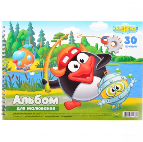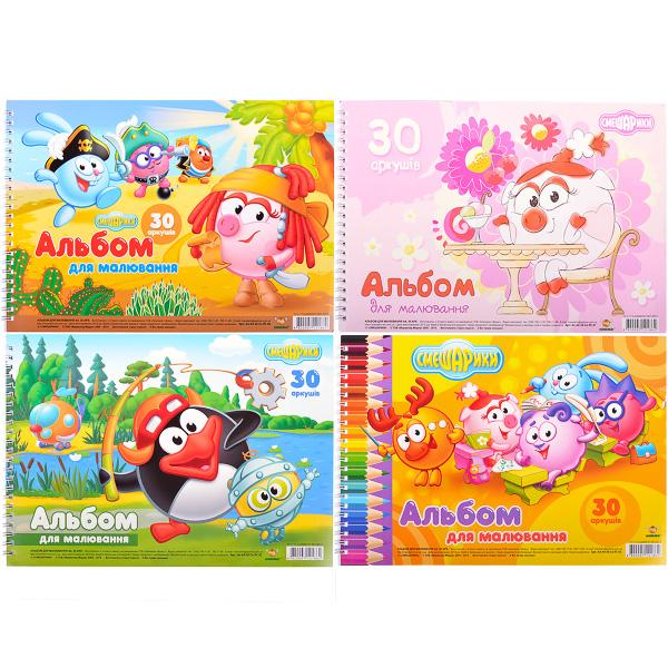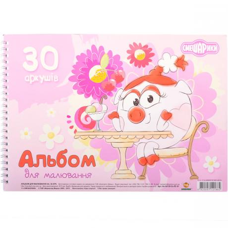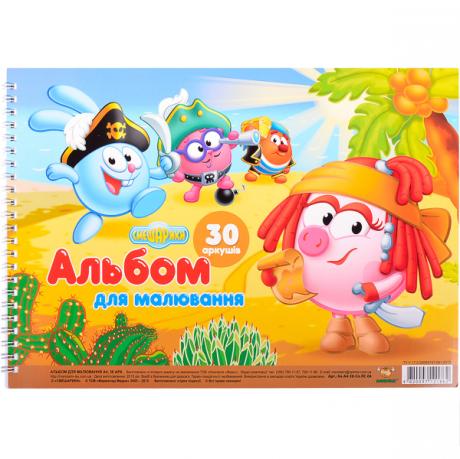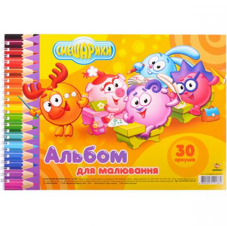 Альбом на спирали Мандарин, 30 листов. Формат А4. Плотность 100г/м². Белизна 98%. Лицензия "Смешарики"