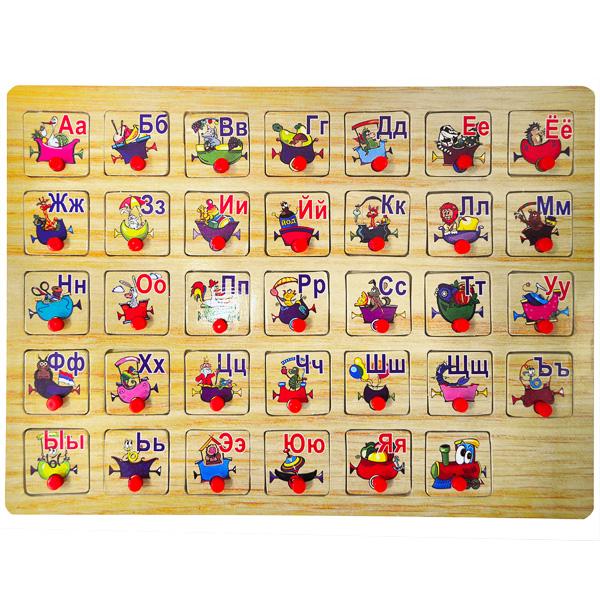 Деревянная рамка-вкладыш Алфавит - это игра для малышей от 1-го года, которая позволит им развивать мелкую моторику рук, логику, мышление, а также познакомиться с русским алфавитом. Для удобства каждая деталь пазла оснащена ручкой-держателем. Размер 40х29,5см
