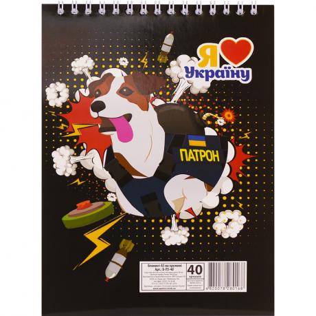 Блокнот формата А5 (140 x 205 мм) содержит 40 листов в клетку. Обложка выполнена из картона. Блокнот имеет спиральное крепление и оформлен в патриотическом стиле.