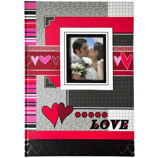 В твердом переплете, 15х21см, бумага офсет 80 листов, на обложке место для фото