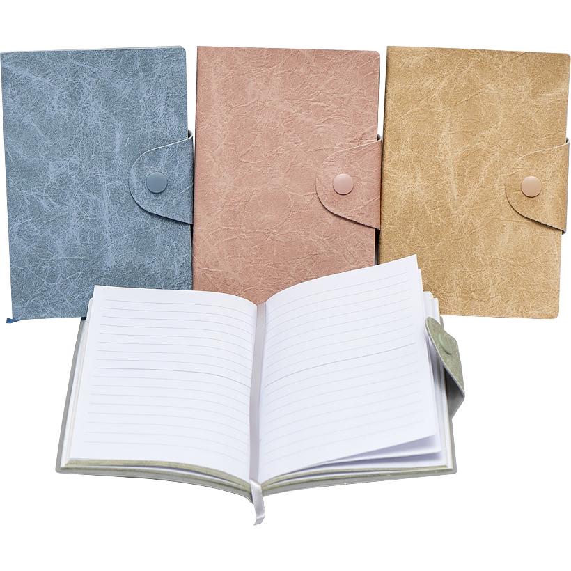 Блокнот с интегральной обложкой и кнопкой. Содержит 80 листов в линию, кремового цвета. Размер составляет 11x16 см.