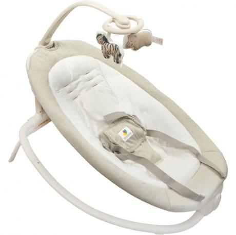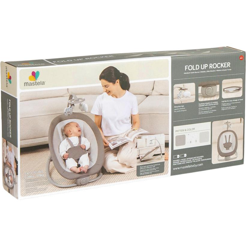 Детский шезлонг-качалка Mastela предназначен для детей весом 3–9 кг. Размер в собранном виде — 74×50×70 см, длина гамака — 74 см, высота — 45 см. Конструкция позволяет ребёнку самостоятельно раскачиваться, предусмотрена фиксация в неподвижном положении. Оснащён съёмной панелью с игрушками, функцией успокаивающей вибрации и несколькими мелодиями с регулировкой громкости. Работает от 2 батареек типа AA/LR6. Компактно складывается для хранения и транспортировки, размер коробки — 59×29×10 см. Товар выгодный для оптовых магазинов и подходит для розничной продажи.