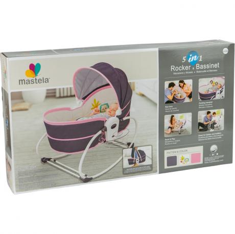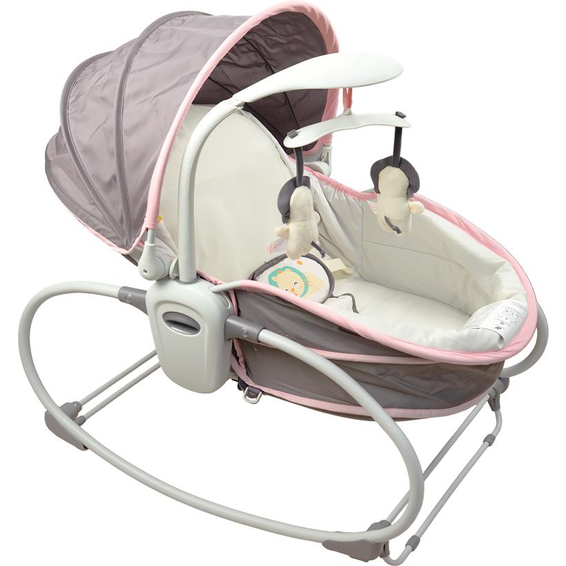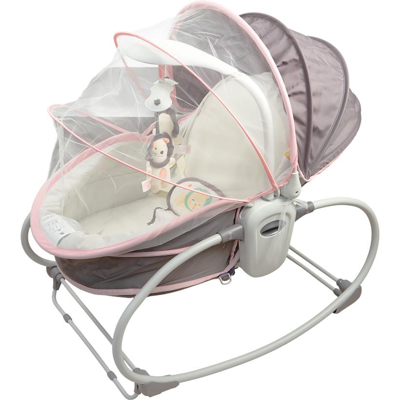 Люлька-качалка Mastela 5 в 1 сочетает функции люльки для сна и укачивания, шезлонга для отдыха и игр, а также переноски со съёмным сиденьем, что делает модель универсальной для ежедневного использования. Размер в собранном виде — 72×46×80 см, размер люльки — 76×39 см, коробка — 76×42×12 см. Оснащена 5 положениями наклона сидения, регулируемым капюшоном для защиты от света, съёмной игровой панелью с двумя игрушками, функцией успокаивающей вибрации и несколькими мелодиями. Передняя стенка откидная, позволяя родителям быть рядом с ребёнком. Есть режим качания с возможностью фиксации, съёмные ножки, ремни безопасности, ремень для переноски, москитная сетка и напольный фиксатор. Музыка работает от 2 батареек AA. Товар выгодный для оптовых магазинов и подходит для розничной продажи.