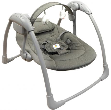 Детский убаюкивающий центр для детей весом 3–11 кг имеет размер рамы в собранном виде 66×57×63 см, размер гамака — 65×45 см. Оснащён 7 мелодиями и вибрацией, 5 скоростями качания и 3 режимами таймера. Предусмотрена поворотная игровая дуга, съёмный подголовник и ремни безопасности с плечевым фиксатором (пятиточечный ремень). По бокам расположены кнопки блокировки качания. Шезлонг легко складывается для хранения и транспортировки. Работает от 4-х батареек типа C/LR14 (не входят в комплект) и от USB-кабеля 1,5 м (в комплекте). Также есть инструкция на английском языке. Подходит для дома и поездок. Товар выгодный для оптовых магазинов и подходит для розничной продажи.