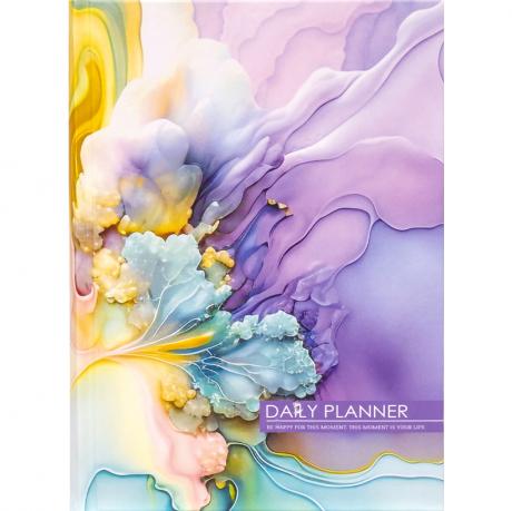 Ежедневник датированный на 2024 год, размером 143х210 мм, содержит 160 листов бумаги книжно-журнальной 60г/м2 в линию с пухлостью 1,8. Обложка выполнена из картонного переплета 1,75 (производство Украина) и покрыта матовой ламинацией. Корешок книги круглый. Печать внутреннего блока осуществлена в 1+1 цветах CMYK.
