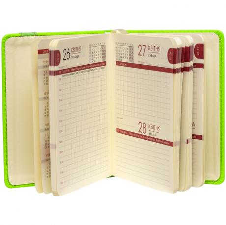 Ежедневник датированный на 2024 год, формат А6. Содержит 160 листов кремового цвета с плотностью 70 г/м2, разметка в клетку. Обложка выполнена из искусственной кожи, имеет округленные углы. Форзац без печати, кремового цвета. В комплекте идет кремовая закладка.