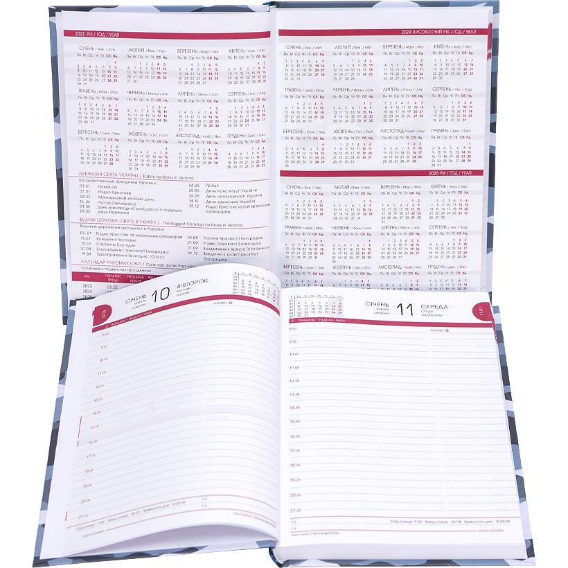 Ежедневник датированный 2023, 70г, твердая обложка 143х210 мм, 160 листов. Картон переплетный 1,75 (Украина), Бумага мелованная 130г/м2, печать 4+0. Матовая ламинация. Круглый корешок. Язык украинский