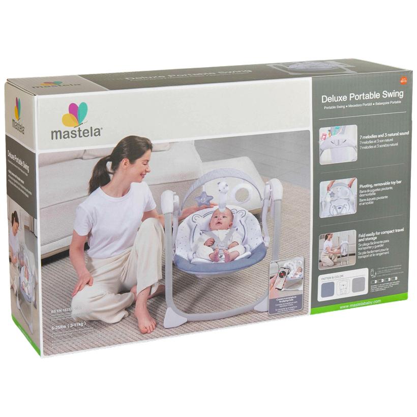 Детский убаюкивающий центр Mastela 6513 предназначен для детей весом 3–11 кг и используется для комфортного отдыха и мягкого укачивания малыша дома. Размер качелей — 74×56×56 см, размер гамака — 73×49 см, что обеспечивает удобное размещение ребенка. Модель оснащена 5 скоростями качания, 3 режимами таймера и 7 мелодиями, двухпозиционным наклоном гамака и ремнями безопасности с плечевым фиксатором. В комплект входят съемная арка с тремя игрушками и съемный подголовник. Центр легко складывается для хранения и транспортировки. Работает от 4 батареек типа C/LR14 (не входят в комплект) или от USB-кабеля (в комплекте), инструкция на английском языке прилагается. Размер коробки — 61×37×18 см. Товар выгодный для оптовых магазинов и подходит для розничной продажи.