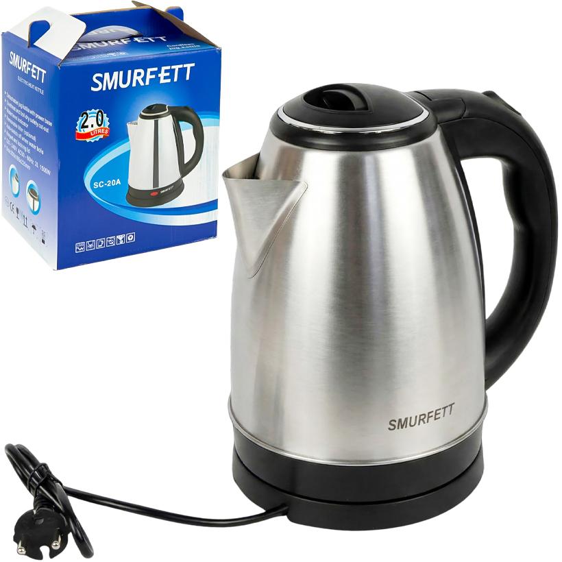 Чайник электрический объемом 2 л предназначен для кипячения воды. Высота чайника 22 см, диаметр дна 15 см, диаметр платформы 16 см, длина шнура питания 58 см. Кнопка включения расположена на верхней части ручки, крышка открывается нажатием кнопки. Чайник устанавливается на круглую платформу для подключения к сети. Для изготовления используются безопасные для бытового применения материалы. Упакован в коробку размером 22×20×16,5 см. Цена указана за 1 единицу товара. Товар выгодный для оптовых магазинов и подходит для розничной продажи.