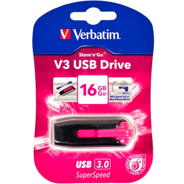 Флешка USB 3.0 Verbatim SuperSpeed V3 розовая, объем памяти 16Gb.