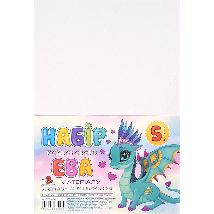 Фоамиран белый с глиттером клеевая основа GL-EVA-1-ADH-046 А4, 21х29,7см, 1.6 мм, 5 лист. ФЦ014/4