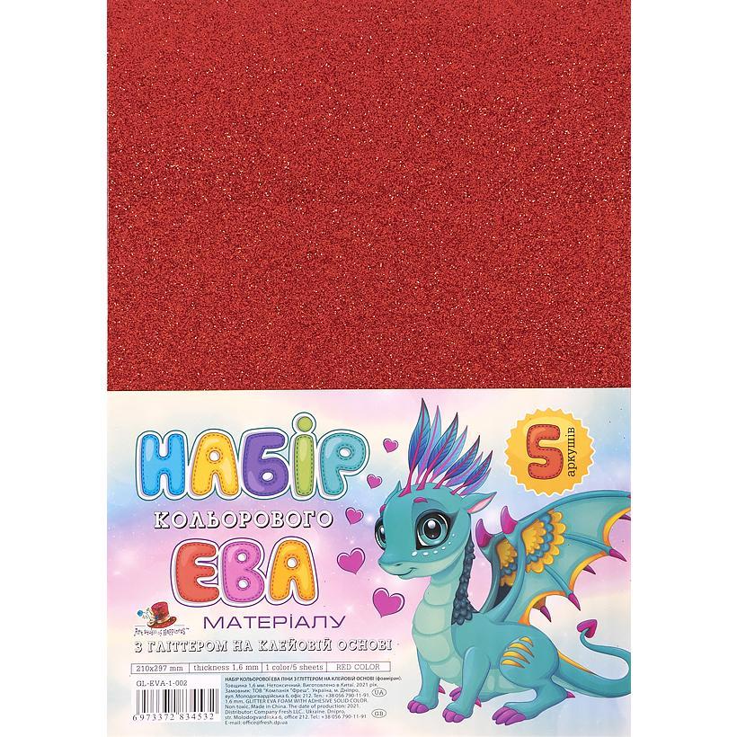 Фоамиран красный с глиттером клеевая основа GL-EVA-1-ADH-002 А4, 21х29,7см, 1.6 мм, 5 лист. ФЦ014/5