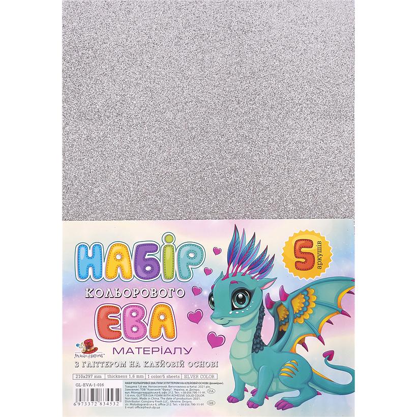 Фоамиран серебряный с глиттером клеевая основа GL-EVA-1-ADH-016 А4, 21х29,7см, 1.6 мм, 5 лист. ФЦ014/3