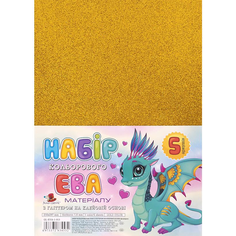 Фоамиран золотой с глиттером клеевая основа GL-EVA-1-ADH-013 А4, 21х29,7см, 1.6 мм, 5 лист. ФЦ014/8