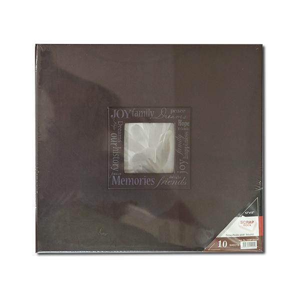 Альбом для скрапбукинга на 10 листов с плёнкой (файлов) для 20 бумажных листов размером 30х30 см. В центре обложки альбома имеется небольшая фоторамка (7,5х7,5 см) для заглавной фотографии. Размер альбома 35х32 см