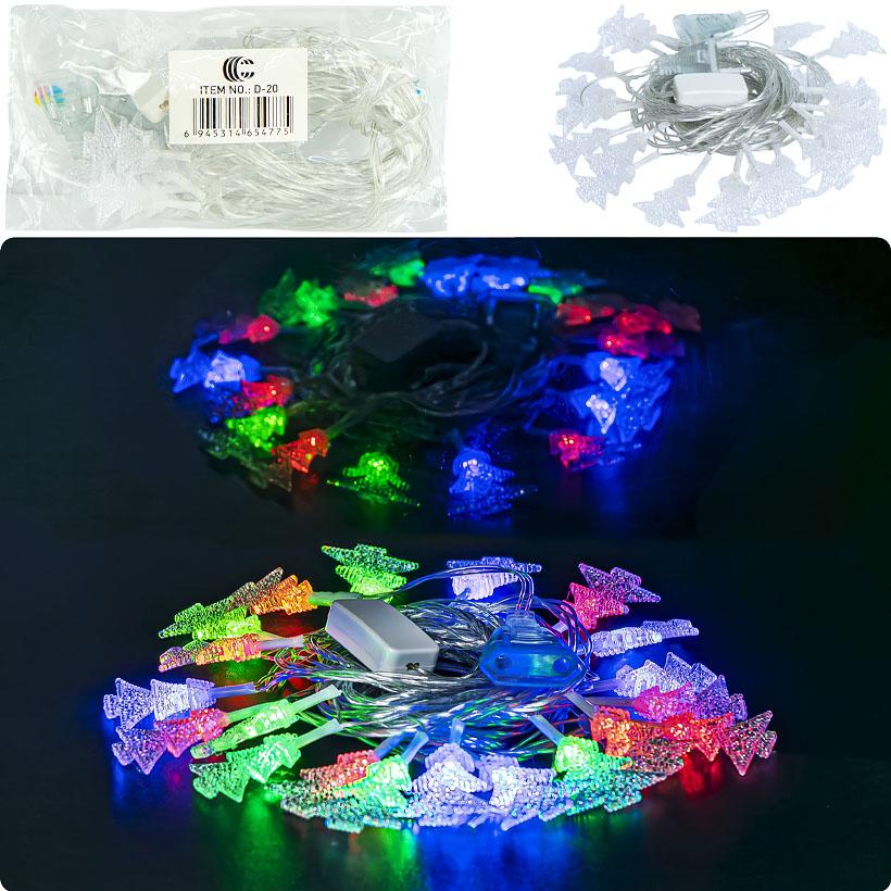 Гирлянда электрическая "Ёлочки" 20шт 4М LED цветная D-20