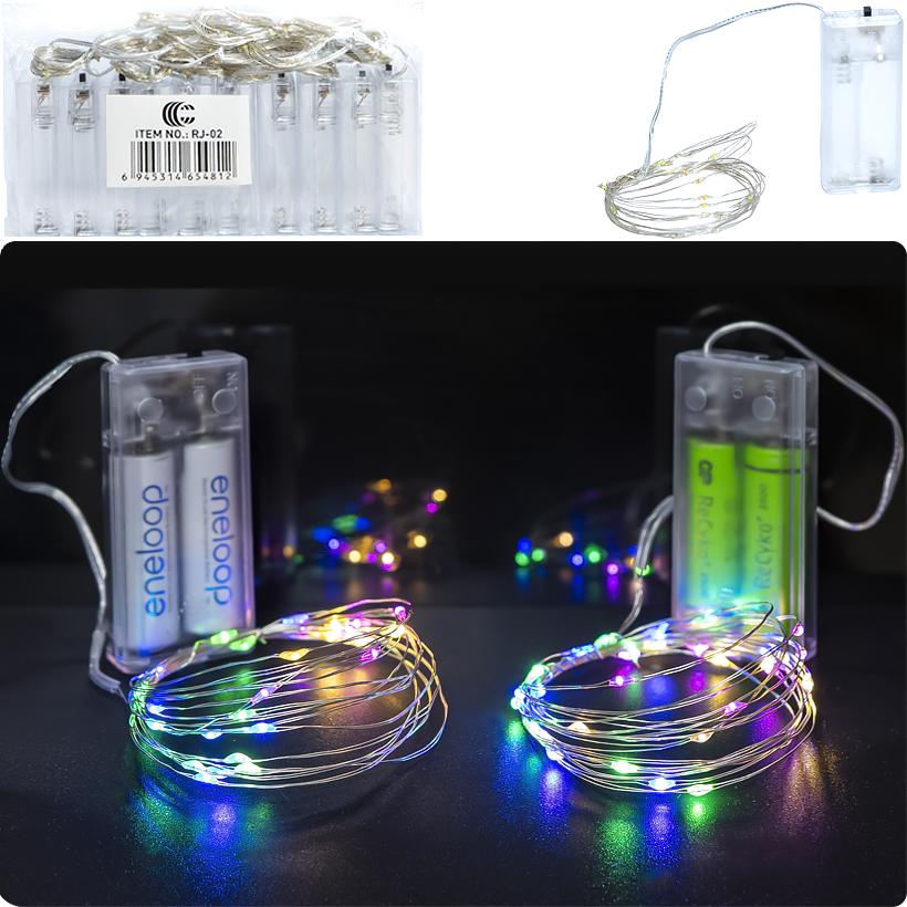 Гирлянда "Роса" на 2-х батарейках 30 лампочек 3 метра мультицвет RJ-02
