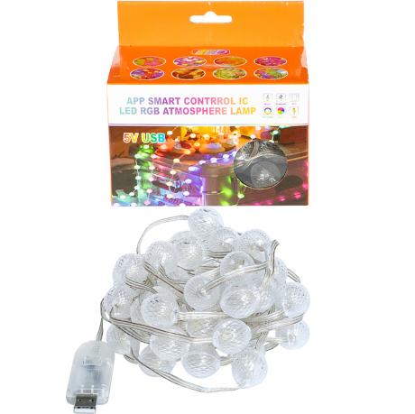 Гирлянда "Smart" RGB с пультом "Шарик большой" USB 50L 5 метров, меняет цвет D-52