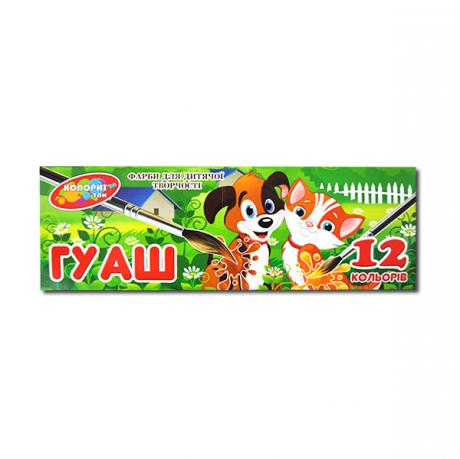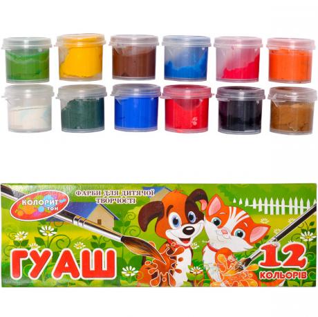 Гуашь для детского творчества, 12 цветов, 12 мл. Гуашью можно работать не только на бумаге, но и на холсте, на ткани, картоне, фанере. Гуашь широко применяется в декорационной живописи, при выполнении различных эскизов.