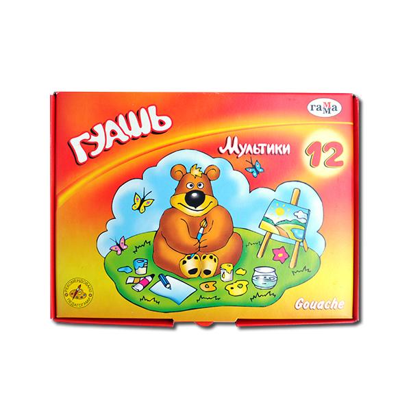 12 цветов, объём краски одного цвета 20 мл. Гуашью можно работать не только на бумаге, но и на холсте, на ткани, картоне, фанере. Гуашь широко применяется в декорационной живописи, при выполнении различных эскизов