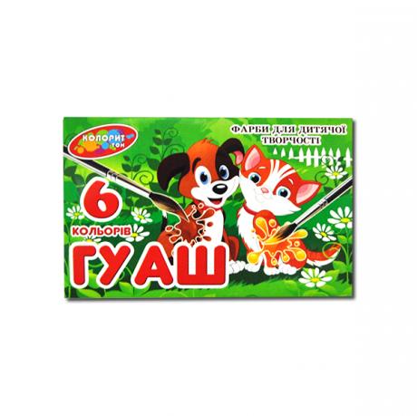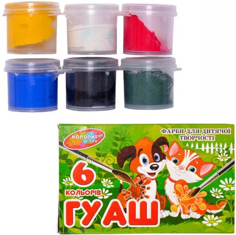 Гуашь для детского творчества, 6 цветов, 12 мл. Гуашью можно работать не только на бумаге, но и на холсте, на ткани, картоне, фанере. Гуашь широко применяется в декорационной живописи, при выполнении различных эскизов