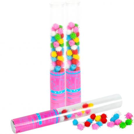 Хлопушка "Помпоны" длиной 40 см. Пневматическая поворотная конструкция. Наполнена цветными помпонами и конфетти.