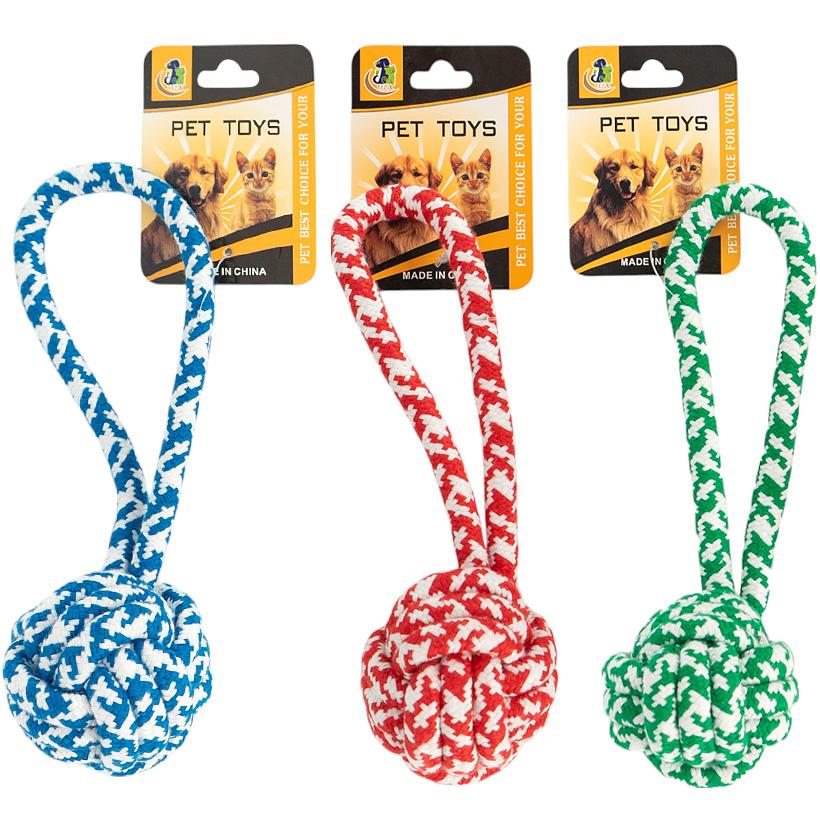 Канатная игрушка для собак с узлом и удобной петлёй — идеальна для игр в перетягивание, жевания и тренировки челюстей. Длина: 23 см. Изготовлена из прочного хлопкового каната, безопасного для зубов и дёсен. Узел стимулирует интерес и способствует очищению зубов. Подходит для собак всех пород. Яркая расцветка привлекает внимание. Отличный товар для оптовых продаж, зоомагазинов и интернет-торговли.