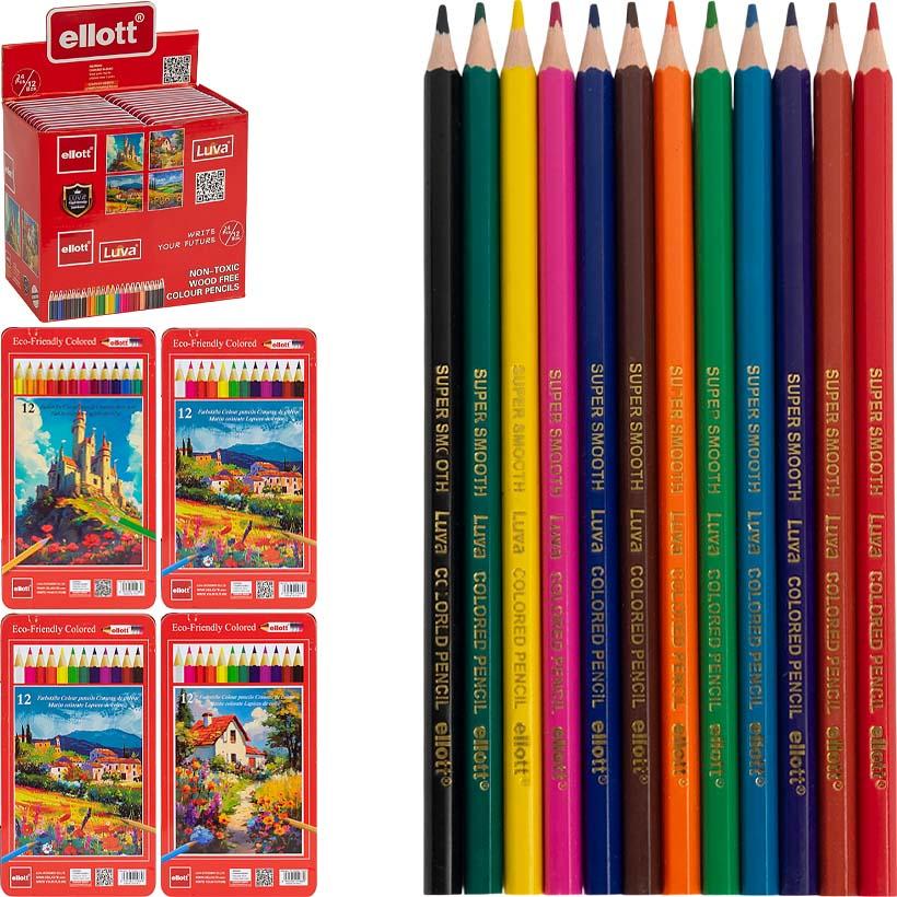 Карандаш 12 цветов Luva Ellott ET-TH5001-12 в металлическом пенале