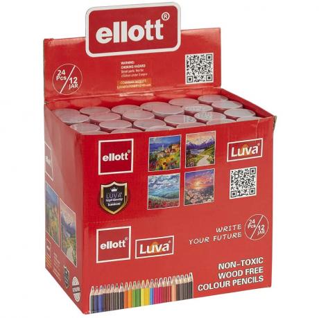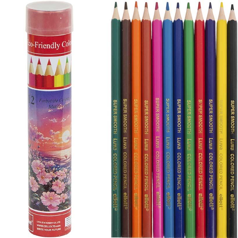 Набор цветных карандашей Ellott Luva включает 12 цветов и подходит для рисования и раскрашивания. Карандаши выполнены из безопасных нетоксичных материалов, грифель мягкий и обеспечивает плавное и равномерное нанесение цвета. Цвета хорошо передаются на бумаге и подходят для создания рисунков и учебных работ. Карандаши упакованы в металлический тубус. Цена указана за 1 тубус. Товар выгодный для оптовых магазинов и подходит для розничной продажи.