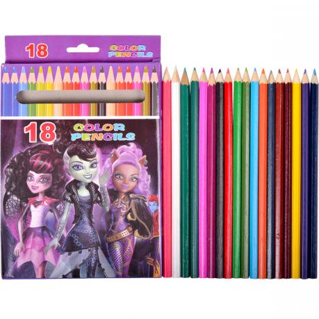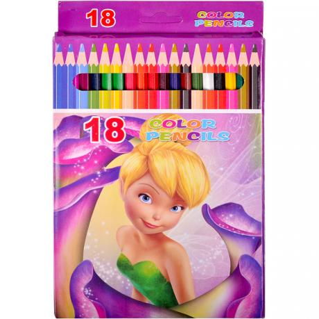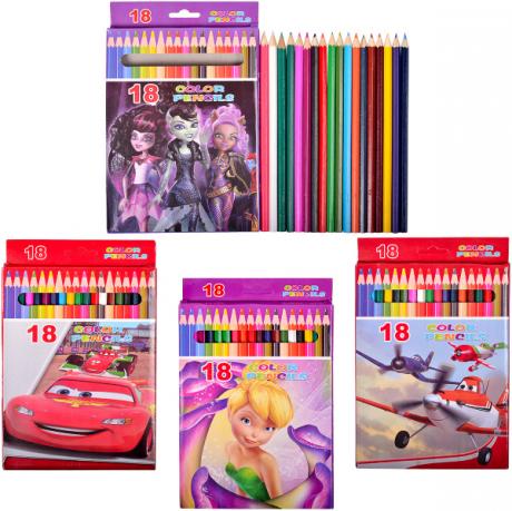 Набор цветных карандашей на 18 цветов в картоной упаковке, картинки из популярных мультфильмов.