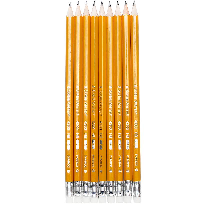 Графитные карандаши HB Marco Superb Writer (4200-144CB) с резинкой. Упаковка содержит 144 карандаша.