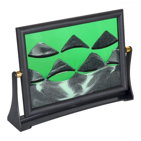 Такая картина из песка может стать оригинальным подарком.Она представляет собой реалистичную картину падающего сквозь вязкую жидкость песка. При каждом переворачивании песочно-жидкостной рамки получается уникальный рисунок. Материал: стекло, пластик. Размер с учетом подставки 18*12см.