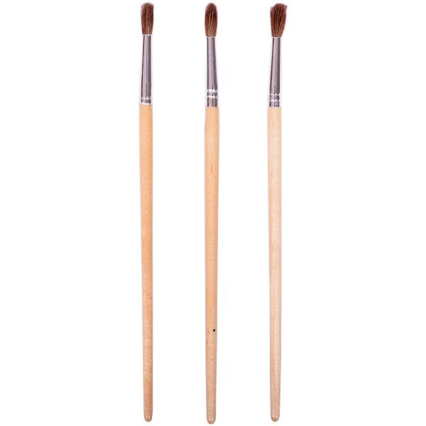 Кисть №5. Кисти пони изготавливаются из дерева и копытного волоса пони. В отличие от обычных лошадей, волос пони отличается мягкостью, гладкостью, шелковистостью. Волос пони толще волоса белки, поэтому кисти из пони более плотные. Кисти хорошо впитывают и отдают краску. Кисть закруглена на пучке, чтобы вода стекала по центр. Основное применение: акварель, гуашь, клей. Длина 19 см. В упаковке 25 штук.