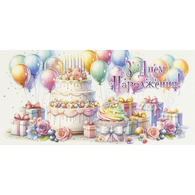 Конверт для денег поздравительный "З Днем народження" КВ 25-186