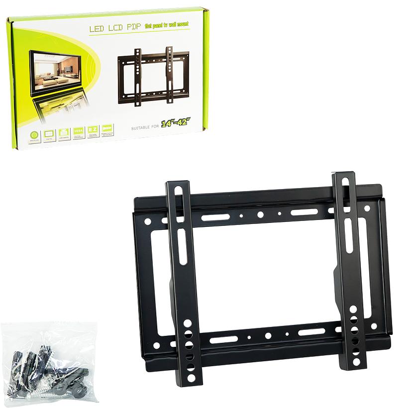 Настенный кронштейн для телевизора LED / LCD / PDP предназначен для экранов диагональю 14–42 дюйма с максимальной нагрузкой до 25 кг. Поддерживает стандарт VESA 75×75, 100×100 и 200×200 мм, что обеспечивает совместимость с большинством современных телевизоров. Прочная металлическая конструкция гарантирует надёжную фиксацию и устойчивость. Кронштейн устанавливается близко к стене, экономя пространство и обеспечивая аккуратный внешний вид. Подходит для дома, офиса и коммерческих помещений.