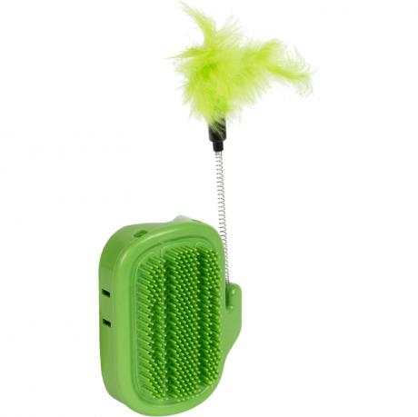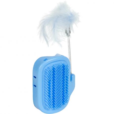 Размер 13×11×4 см, длина зубчиков 1 см, пружина 12 см с перышком и колокольчиком, в комплекте 4 двухсторонних скотча 2×3 см, 1 г кошачьей мяты, вес 98 г, упаковка — пакет. Пластиковая настенная щетка для кошек предназначена для самостоятельного массажа и ухода за шерстью. Кошачья мята засыпается внутрь корпуса в специальный отсек и постепенно распространяет аромат через отверстия, привлекая питомца. Мягкие зубчики аккуратно вычесывают шерсть и стимулируют кожу. Легко крепится к стене или мебели. Товар выгодный для оптовых магазинов и подходит для розничной продажи.
