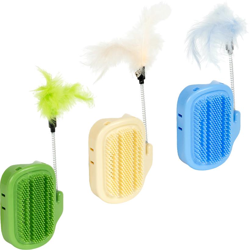 Щетка-массажер для кошек 13*11см 98г настенная с кошачьей мятой и пружинкой CW-98g