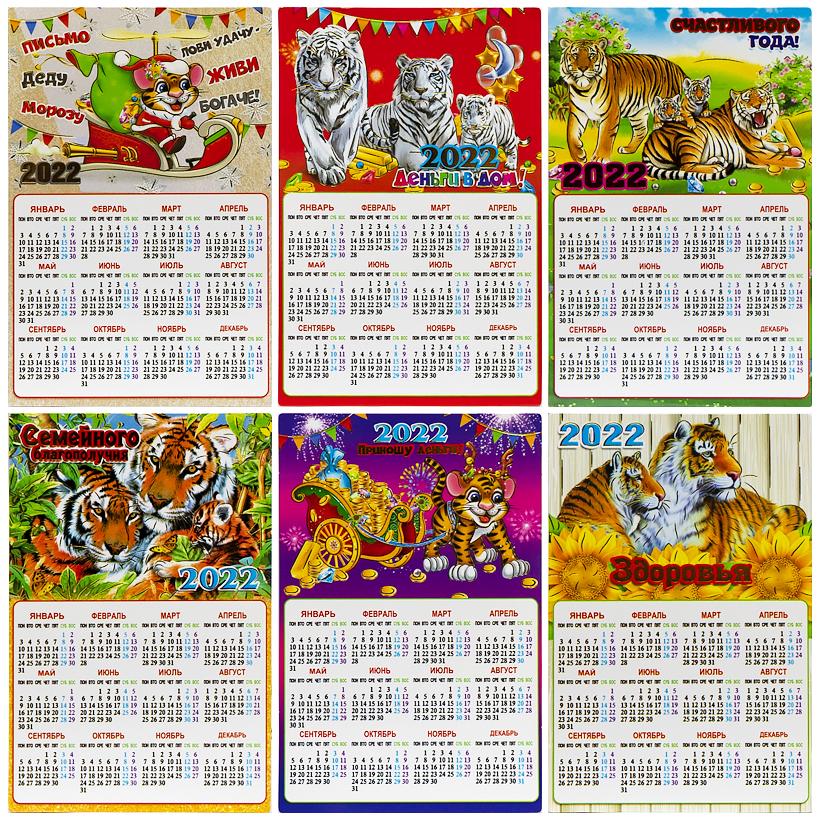 Календарик "2022" с магнитной лентой . Размер: 15*10 см. Картинки в ассортименте. В упаковке 50шт