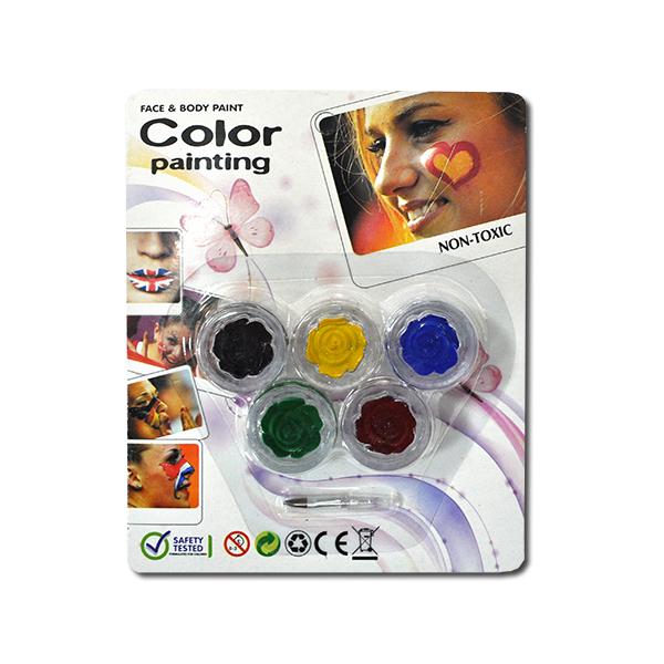 Набор цветных красок. 5 цветов с кисточкой, для раскрашивания тела (Body Art).