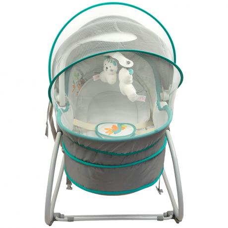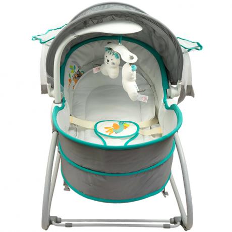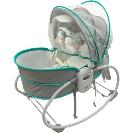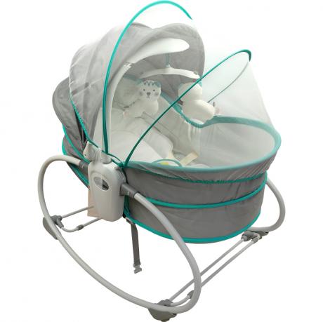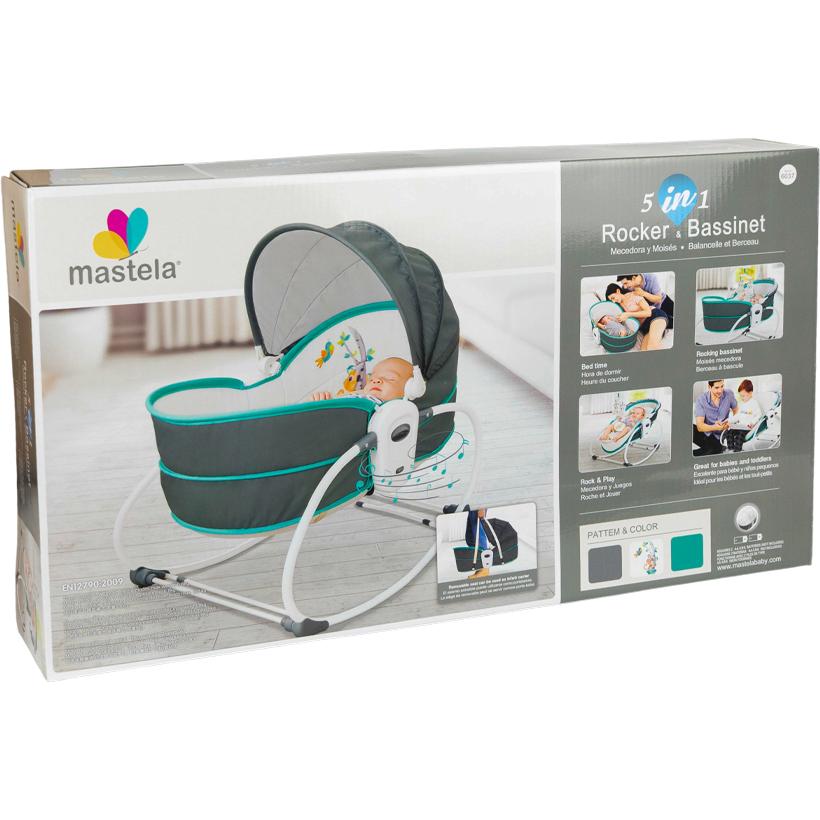 Люлька-качалка Mastela 5 в 1 сочетает функции люльки для сна и укачивания, шезлонга для отдыха и игр, а также переноски со съёмным сиденьем, что делает модель универсальной для ежедневного использования. Размер в собранном виде — 72×46×80 см, размер люльки — 76×39 см, коробка — 76×42×12 см. Оснащена 5 положениями наклона сидения, регулируемым капюшоном для защиты от света, съёмной игровой панелью с двумя игрушками, функцией успокаивающей вибрации и несколькими мелодиями. Передняя стенка откидная, позволяя родителям быть рядом с ребёнком. Есть режим качания с возможностью фиксации, съёмные ножки, ремни безопасности, ремень для переноски, москитная сетка и напольный фиксатор. Музыка работает от 2 батареек AA. Товар выгодный для оптовых магазинов и подходит для розничной продажи.