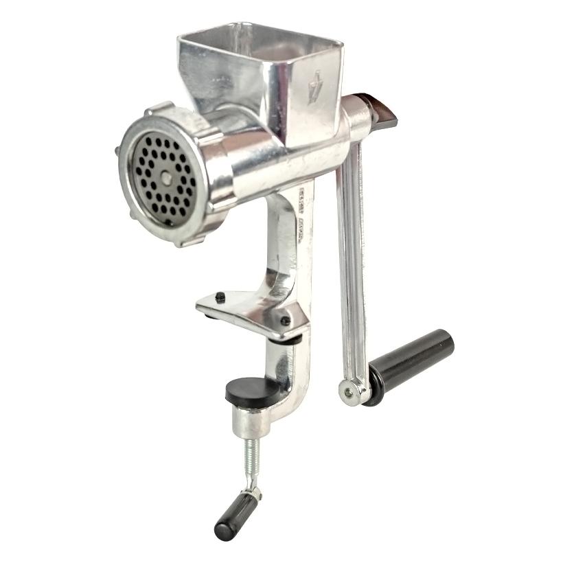 Мясорубка ручная — практичное решение для переработки мяса и других продуктов в домашних условиях. Размеры: полная высота — 25 см, длина корпуса — 18 см, диаметр выходного отверстия — около 7 см, длина ручки — 19×9,5 см, длина корпуса до решетки — 8,8 см, размер загрузочного лотка — 6×8 см, максимальная толщина столешницы — до 5,2 см. Корпус выполнен из металла, конструкция прочная и устойчивая при работе. Вес — 860 г. Оснащена ручным приводом с удобной рукояткой и креплением к столу с помощью струбцины. В комплект входят нож и решетка. Подходит для использования в быту и на кухне. Поставляется без заводской коробки. Цена указана за 1 единицу товара. Товар выгодный для оптовых магазинов и подходит для розничной продажи.