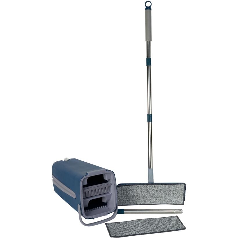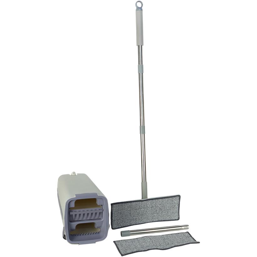 Набор для влажной уборки предназначен для эффективной и комфортной очистки напольных покрытий в жилых и коммерческих помещениях. В комплект входит практичное ведро с двумя отсеками: один для чистой воды, второй — для отжима, что позволяет легко регулировать уровень влажности насадки без контакта рук с водой. Швабра оснащена сменной насадкой из 100% микрофибры, подходящей для всех видов покрытий — плитки, ламината, линолеума, паркета и других поверхностей. В наборе предусмотрены 2 микрофибровые насадки, что увеличивает срок эксплуатации и удобство использования. Длина швабры в собранном виде составляет 118 см, размер насадки — 32×12 см. Ведро компактного размера 38×21 см оснащено сливом для удобного удаления воды. Используемые материалы — нержавеющая сталь, прочный пластик и микрофибра — обеспечивают надёжность и долговечность. Практичное решение для дома, офисов и клининговых компаний.