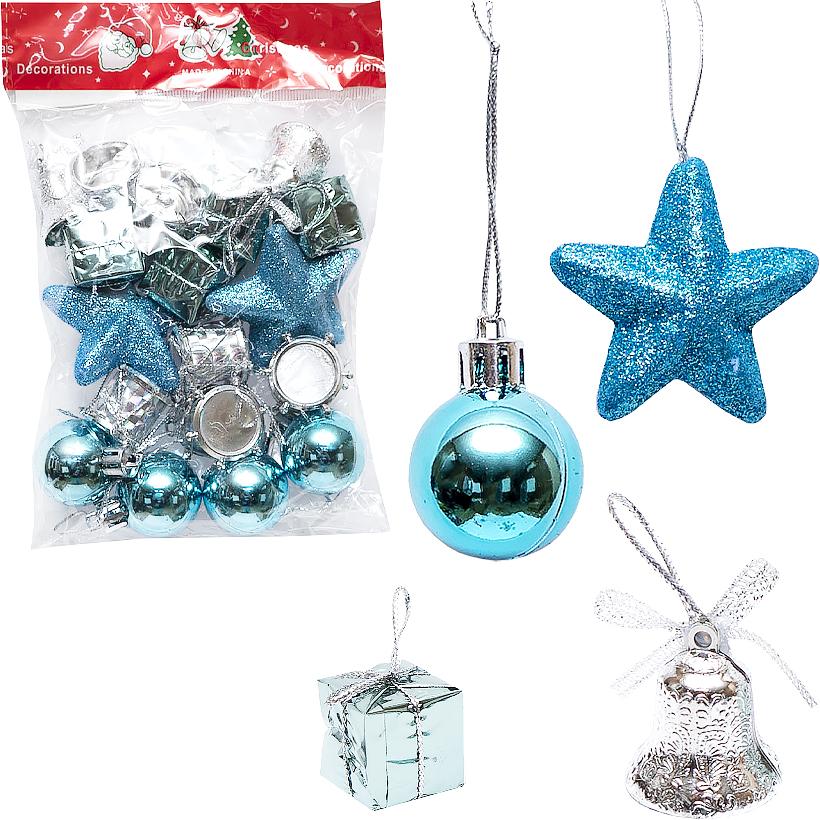 Набор включает 18 подвесных украшений для декора елки и помещения. Изготовлены из пластика и пенопласта. Размер каждой игрушки составляет 3 см. Упаковка имеет размеры 20 х 12 см. Цена указана за одну упаковку.