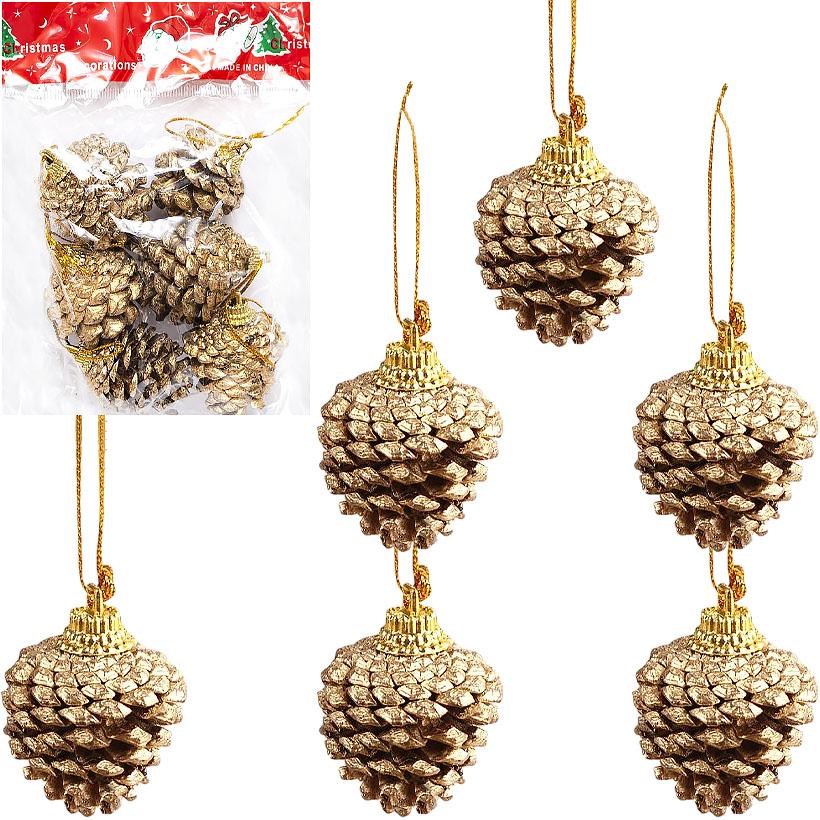 Набор новогодних ёлочных украшений в виде шишек — стильное и универсальное решение для праздничного декора. В комплекте 6 игрушек, каждая высотой 5 см и шириной 4 см. Украшения выполнены из прочного материала и покрыты золотой краской, которая придаёт им элегантный блеск. Лёгкие, аккуратные, с удобной петелькой для подвешивания, они прекрасно подойдут для украшения ёлки, венков, гирлянд или новогодних композиций в доме, офисе или витрине.
