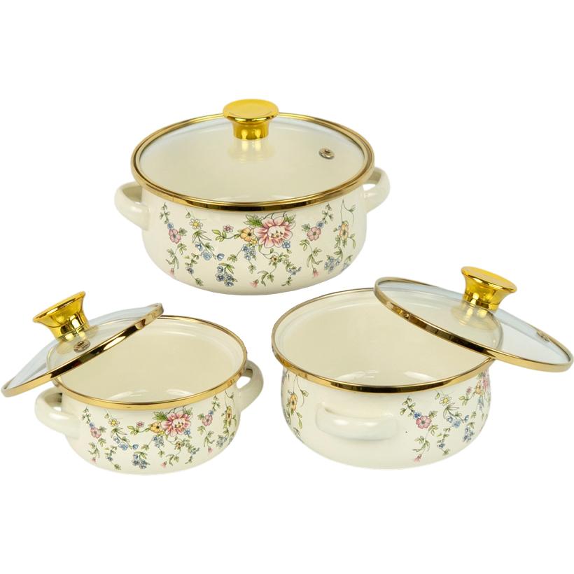 Набор эмалированных кастрюль 3шт с крышками D12/14/16см 7043-11