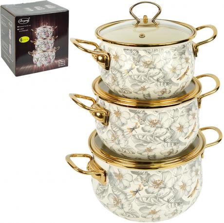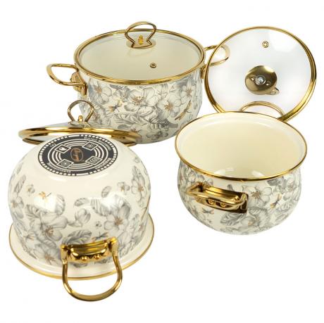 Набор эмалированных кастрюль 3шт с крышками D18/20/22см 7043-8