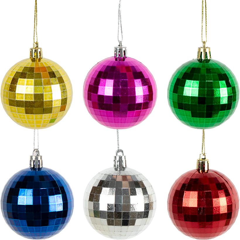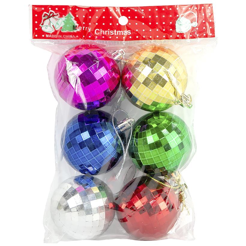 Набор включает 6 пластиковых елочных шаров диаметром 6 см. Цвет шаров в миксе. Проверка целостности товара рекомендуется при получении на почте. Цена указана за весь набор.