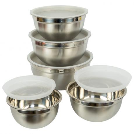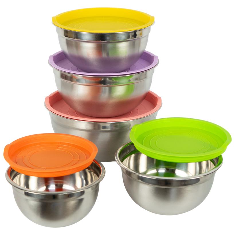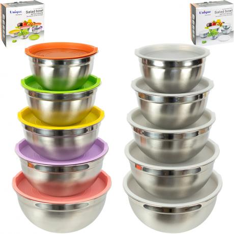 Премиальный набор мисок из нержавеющей стали с многоцветными крышками — идеальное решение для сервировки, хранения и подготовки блюд. Включает несколько мисок разных размеров, которые удобно складываются друг в друга. Крышки плотно прилегают, обеспечивая сохранность продуктов. Отлично подойдёт для салатов, закусок и хранения приготовленной пищи.